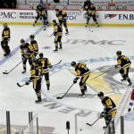 The Penguins sport number 7 Roethlisberger jerseys during warmups before playing the Rangers Tuesday, March 29, 2022 at PPG Paints Arena.