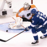 A Lightning turnover in their own zone led to Aube-Kubel standing in front and deflecting in Shayne Gostisbehere’s shot from inside the blue line 7:40 in.