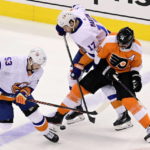 Claude Giroux and James van Riemsdyk responded with their sticks, scoring their first postseason goals after New York went up 1-0 on Josh Bailey’s first-period goal. Matt Niskanen added his first playoff goal early in the third period to put the Flyers up 3-1.