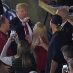 But when President Donald Trump was shown on the videoboard for about 10 seconds before the fourth inning, watching from a lower-level suite, the fans let loose with loud boos and broke into a brief but very audible chant of “Lock him up!”