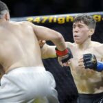 Blake submitted Chase D’Angelo via guillotine choke in the third round of a featherweight bout.