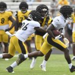 Pickett used the play-action, and running back Jaylen Warren made a nice block, on a touchdown pass to tight end Kevin Rader. Steven Sims then scored on a jet sweep to give the offense a 4-1 advantage.