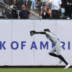 After making a spectacular catch over the short wall in foul territory in the top of the eighth, Giants right fielder Yastrzemski started the bottom of the inning by beating out a bunt. He advanced to second on a sacrifice by Patrick Bailey and to third on a groundout by Ramos. But Carmen Mlodzinski got Rafael Devers to fly out to left to escape.