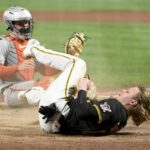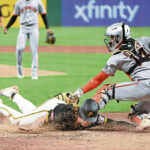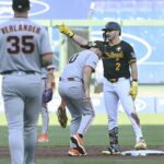 With runners on second and third — Suwinski had been hit by a pitch — Kiner-Falefa hit a grounder to first baseman Rafael Devers. A sliding Suwinski beat Devers’ throw to home and Bailey’s tag for the walk-off win. The Giants challenged the call, but it was upheld after review.