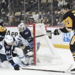 After Malkin and Penguins forward Rickard Rakell won a puck battle in the right corner of the offensive zone against Jets defensemen Dylan DeMelo and Dylan Samberg, Rust claimed possession and fed a pass from the near circle to left of the crease where Bunting shuffled in a quick forehand shot by goaltender Connor Hellebuyck’s blocker on the near side. Assists went to Rust and Malkin.