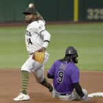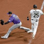 Tsutsugo, who entered the game batting .181, beat the throw to first by Rockies second baseman Brendan Rogers, allowing Hayes to score.