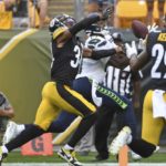 On a prayer of a pass from Russell Wilson to Tyler Lockett on a second-and-20 from the Seattle 27, Kelly was defending in front when Steelers strong safety Terrell Edmunds broke up the play.