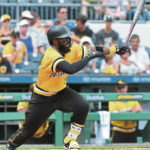 Pirates second baseman Josh Harrison grounds into an out during the fifth inning against the Brewers Sunday, July 15, 2018, at PNC Park. Harrison was injured on the play.
