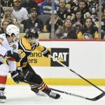 Taking a pass at center point of the Panthers’ zone, Dumoulin surveyed the scene and fired a shot/pass behind the right hashmarks where Letang, his long-time partner, deflected the puck with the forehand of his stick blade past Lyon’s left skate for his third goal. Dumoulin and Heinen claimed assists.