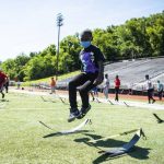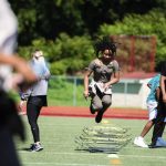 Donald and his trainer Dewayne Brown, along with his 2/10ths Speed + Agility training team, led the voluntary workout. More than half of the 120 middle school students participated in the hour-long workout, doing a warmup, foot drills and agility drills.