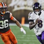 Back on the field after being sidelined by cramps, Jackson threw a 44-yard touchdown pass to Marquise Brown and then set up Justin Tucker’s 55-yard field goal with two seconds left, helping the Ravens to a wild 47-42 win over the Cleveland Browns that helped them stay in the playoff picture.