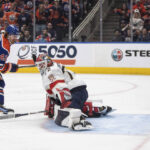 Edmonton coach Kris Knoblauch unsuccessfully challenged for goaltender interference, with the NHL’s situation room ruling that the Oilers’ Jake Walman tripped Bennett into Skinner. The resulting penalty paved the way for Florida’s Brad Marchand to score the go-ahead goal on a power play.