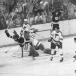 Trailing most of the way, the Bruins gained a tie on Bucyk’s goal with less than seven minutes remaining in regulation time. Then just 40 seconds into the sudden death overtime period, Orr banged home the winning tally.