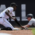 The Pirates got a break in the bottom of the sixth, when Josh VanMeter drew a leadoff walk and then raced to third on a high chopper by Ke’Bryan Hayes dropped between shortstop Miguel Rojas and third baseman Willians Astudillo. Hayes stole second, putting a pair of runners in scoring position with no outs.