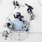 Zuccarello then jumped on a fortunate deflection for Dallas, tying it at 1 at 15:55. A clearing attempt by St. Louis forward David Perron hit referee Marc Joannette and bounced right into the slot. Binnington was looking in the other direction and never saw Zuccarello’s shot.