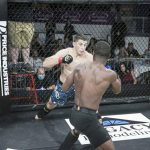 Evan DeLong, who trains at Mat Academy in Lower Burrell, throws a punch against Tenarious Dooley at 247 Fighting Championships’ ‘Flood City Fight Night, in Johnstown.