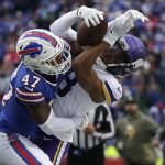 Greg Joseph put the Vikings ahead to stay by hitting a 33-yard field goal with 3:42 left in overtime. The game didn’t end until Allen, facing second and 10 at Minnesota’s 20, forced a pass over the middle intended for Gabe Davis, only to have Peterson intercept it a few yards into the end zone, his second pick of the day. Peterson ran out and slid to the turf.