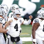 But New York went three-and-out with a chance to seal it — and Carr and the Raiders had 35 seconds left to try for what appeared an unlikely comeback. Four plays later, Carr found Ruggs streaking downfield — beating rookie cornerback Lamar Jackson — and delivered the ball perfectly for the winning score.