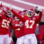 The Chiefs’ offense finally got on track in the closing minutes of the first half. They never faced third down in going 78 yards for a tying score. Mahomes zipped a short TD pass to Kelce, who earlier became the first tight end in NFL history and first player in Chiefs history with multiple 100-catch seasons when he hauled in his second pass of the game.