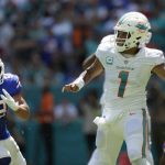 Tagovailoa briefly left the game in the second quarter, returning after halftime despite appearing to be disoriented by a head injury. Allen also may have been injured, heading to the X-ray room after the game. He had his throwing hand checked by trainers late.