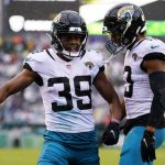 Trevor Lawrence threw for 174 yards and two touchdowns to Jamal Agnew. Lawrence was strip-sacked on the final drive of the game that sealed the win for the Eagles. It was one of four lost fumbles for the second-year quarterback.