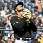 Pirates pitcher Johan Oviedo celebrates after getting the final out of the sixth inning against the White Sox on Sunday, April 9, 2023, at PNC Park.