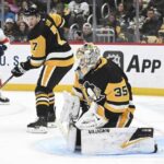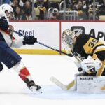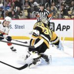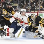 Off an offensive zone turnover by Penguins forward Jeff Carter, Tkachuk generated another rush into the Penguins’ zone on the right wing as the Penguins made a line change with the benches on the far side of the ice. As Penguins defensemen Marcus Pettersson and P.O Joseph made futile efforts to race back, Tkachuk slid a pass to the left of the crease where Lundell tapped in an easy forehand shot by Jarry’s right skate. Tkachuk and forward Nick Cousins had assists.