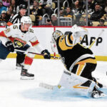 Pushing play out of his own zone, Penguins forward Drew O’Connor generated an offensive rush and gained the Panthers’ zone on the left wing. From the boards, he slid a cross-ice pass to Ludvig, who fended off Gadjovich then gripped and ripped a wrister by Bobrovsky’s glove on the near side. O’Connor and Eller had assists.