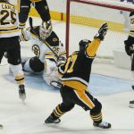 Ullmark returned to the game 5:42 into the third period after Swayman was injured following a collision with Bergeron during a Penguins’ power-play opportunity. After taking several moments to recover to his skates, Swayman left the ice with assistance from teammates. There was no immediate word on Swayman’s status.
