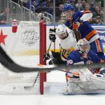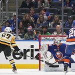 After Crosby beat Horvat on a faceoff in the Islanders’ left circle, Pettersson chopped a one-timer from the center point that was blocked by Lee. The rebound bounced to the slot where Rakell settled it and hurried a forehand shot that was partially blocked by Islanders defenseman Adam Pelech. Above the crease, Crosby furiously fended off Horvat to claim possession of the puck and slipped a deft backhand pass back to the slot for Rakell, who leaned down and snapped a forehand shot past Sorokin’s left skate. Assists were tallied by Crosby and Pettersson.