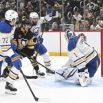 Pushing play into the offensive zone on the right wing, Penguins defenseman Erik Karlsson surveyed the scene as the Sabres made a casual line change and snapped a pass to the far side of the crease. Hayes chugged in from the left circle, escaped the detection of Sabres defenseman Owen Power and tapped in a forehand shot by Luukkonen’s right skate. Karlsson and defensive partner Parker Wotherspoon claimed assists.