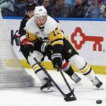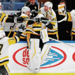 Lugging the puck up ice from his own zone, Penguins forward Philip Tomasino gained the offensive blue line on the right wing, veered past Sabres defenseman Mattias Samuelsson in the right circle then slipped a clever pass to the lower right hashmark where an onrushing Glass swiped a one-timer by Luukkonen’s blocker. Tomasino and Nedeljkovic tallied assists. It was the first point recorded by a Penguins goaltender this season.