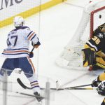 From above the right circle of the Penguins’ zone, McDavid teed up a one-timer at the left point for Barrie, who boomed a shot. Jarry rejected the shot but allowed an ample rebound to the right of the crease that was cleaned up with an easy forehand shot by Draisaitl for his 35th goal. Assists went to Barrie and McDavid.
