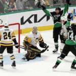 Taking a pass at the center red line between the penalty boxes, Stars forward Jason Robertson snapped a cross-ice pass for linemate Roope Hintz, who burst into the offensive zone on the left with all the momentum of a comet. As Penguins forward Kevin Hayes offered a futile pursuit and ex-Stars defenseman Matt Dumba drifted out of position, Hintz slipped a clever pass to the right hashmarks for Benn, who swept a one-timer by Jarry’s glove on the near side. Hintz and Robertson registered assists.