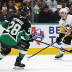 From the left point of the offensive zone, former Stars defensive prospect Ryan Shea lobbed a wrister toward the cage that struck Stars defenseman Miro Heiskanen in the near circle. The ensuing rebound trickled free in the high slot, where Novak collected it and coolly offloaded it to the lower right circle for linemate Sidney Crosby. Considering his options for a moment, Crosby fed a pass to the center point for Penguins defenseman Kris Letang, who chopped a rising one-timer. Stationed below the hashmarks with little resistance, Novak deflected the puck with his stick past Oettinger’s glove. Letang and Crosby collected assists.
