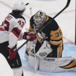 After Graves failed to corral a rimmed puck near his own right corner, Devils forward Jesper Bratt collected it on the wall of the near wing then fed it to the right dot where Glass whipped a wrister through Jarry’s five hole. Penguins defenseman Kris Letang and another ex-Penguins forward, Daniel Sprong, screened Jarry on the sequence. Bratt and defenseman Luke Hughes had assists.