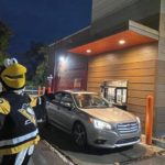 Bourque made customers smile when he told them their order was “on Dunkin.” The Penguins provided giveaways and Bourque chipped in some too. IceBurgh engaged with customers as they waited in line in the parking lot.
