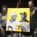 The Pittsburgh Penguins honored the legacy of the organization’s Black players and veteran Black hockey player Willie O’Ree with a portrait by Pittsburgh visual artist Ashanté Josey after the Feb. 4 game against the New Jersey Devils at PPG Paints Arena.