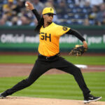 The Pirates (75-85) got an early lead, as Endy Rodriguez drew a full-count walk off Edward Cabrera to lead off the third inning, advanced to second on Peguero’s infield single, to third on Connor Joe’s single to right and scored on a sharp groundout to third by Ke’Bryan Hayes to make it 1-0.