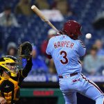 The Phillies would bat around the order in a five-run third, as Nola drew a walk and Odubel Herrera’s double put runners on second and third. Nola scored when Overton’s pitch got past catcher Michael Perez to make it 6-2. It was the first passed ball by a Pirates catcher since Aug. 18, 2020, a 193-game stretch that was the longest in major league history.