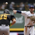 Brewers catcher William Contreras got both hits, but they were followed by strong defensive plays. In the first inning, first baseman Alfonso Rivas caught Carlos Santana’s line drive and turned an unassisted double play.