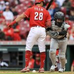 The Reds responded by taking advantage of VanMeter’s inexperience behind the plate, scoring seven runs in the bottom of the eighth. Wil Crowe hit leadoff batter Brandon Drury and walked Tommy Pham and Mike Moustakas to load the bases with no outs. Reds catcher Tyler Stephenson hit a fly ball to right field that bounced past a diving Gamel for a double, scoring Drury and Pham for a 4-2 Reds lead.