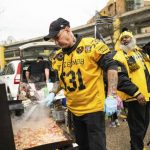 Near the Clark Building, one of the first cars waiting was that of Michael Kirik of Pine Township, with his sons, Jordan and Reagan. Michael Kirik has been coming to the team’s home openers since Three Rivers Stadium was open.