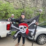 The three men were sporting Pirates garb and carrying a homemade Pirates flag.