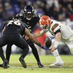 Baker Mayfield threw a 20-yard touchdown pass to David Njoku late in the third quarter, but Cleveland didn’t score again. Up 13-10, the Ravens took over with 6:28 remaining in the game and nearly ran out the rest of the clock. A holding call on guard Ben Powers helped stall that drive, and Justin Tucker’s 49-yard field goal pushed the lead to six with 1:10 to play.