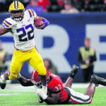 He was crucial in ending LSU’s eight-year run of futility against Alabama in a 46-41 victory this season with 103 yards and three rushing touchdowns with nine catches for 77 yards and another score.