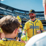 “That’s the one that got me to Banana Ball, and I’ll never stop doing it until the day I die,” he said. “They DMed me on Instagram: ‘You gotta come do this live.’ I haven’t played baseball in seven years, and they’re, like, ‘you gotta do it live.’ … I’ve been here ever since.”