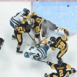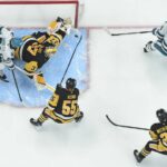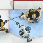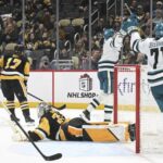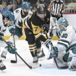 After Rust struck a post on the empty cage, the Sharks generated possession in the offensive zone. That led to Toffoli sliding a pass above the Penguins’ left circle, where Celebrini pumped in a one-timer. Toffoli and forward Collin Graf had assists.