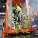 Pittsburgh Steelers wide receiver JuJu Smith-Schuster gets slimed at the Nickelodeon booth during the Steelers Family Fest during an NFL football practice on Sunday, Aug. 19, 2018, in Pittsburgh.