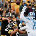 In OT, Diontae Johnson’s fumble after a 39-yard catch and run gave the ball back to the Lions at the Detroit 45. A Minkah Fitzpatrick interception was negated by a holding call on Devin Bush, and the Lions advanced to the Steelers 30 where Santoso’s 48-yard field goal try landed short with 4:03 left.